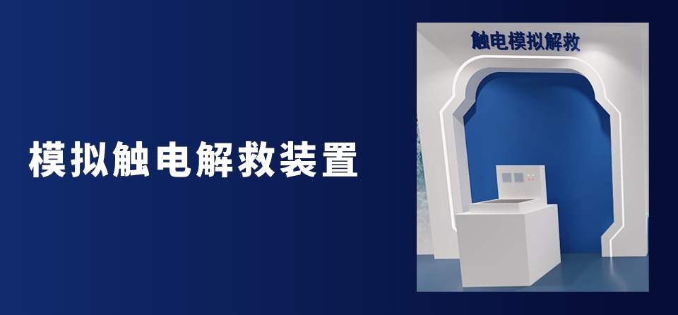 模拟触电解救装置,触电知识学习由一级触电、二级触电、三级触电的生理反应等组成,通过蓝色、红色灯带控制电路通电效果。打开电闸,亮起的灯带表示有电流通过,按下开始键,开始体验,电控假人亮灯,警报器亮灯并发