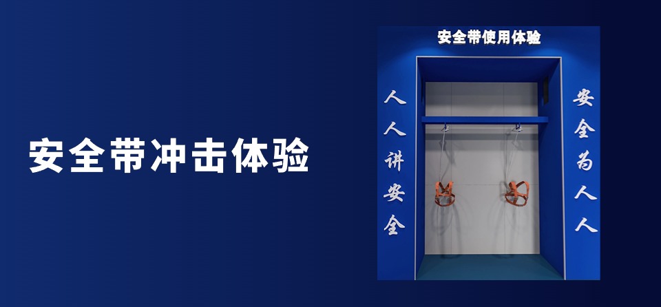 智能安全带冲击体验系统是由镀锌钢结构、油漆、广告布、钢板穿孔、电控、PLC控制系统和A3简介牌组成的。该体验旨在让体验者了解正确穿戴和使用合格产品的重要性以及在上升下落的过程中体验不同的恐惧和不良感受,瞬