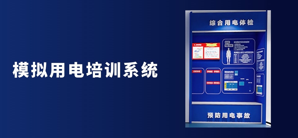 模拟用电培训系统,主要有过电流体验、触电体验、接地插座、接地插头及各类电缆正确张挂敷设示意样品、各种开关箱实物接线正误说明、各种灯具正确接线方式实物说明、低压电过电体验装置;通过模拟触电感觉,了解不同