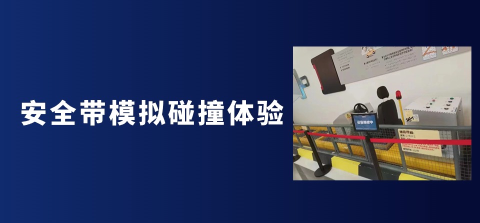 安全带模拟碰撞体验,为了让参观学习者更好的了解安全带的保护作用。我们利用特定的设备进行宣传教育。本设备可真人体验,模拟汽车速度。体验过一次的人员,均会对安全带的保护作用有深刻的理解。