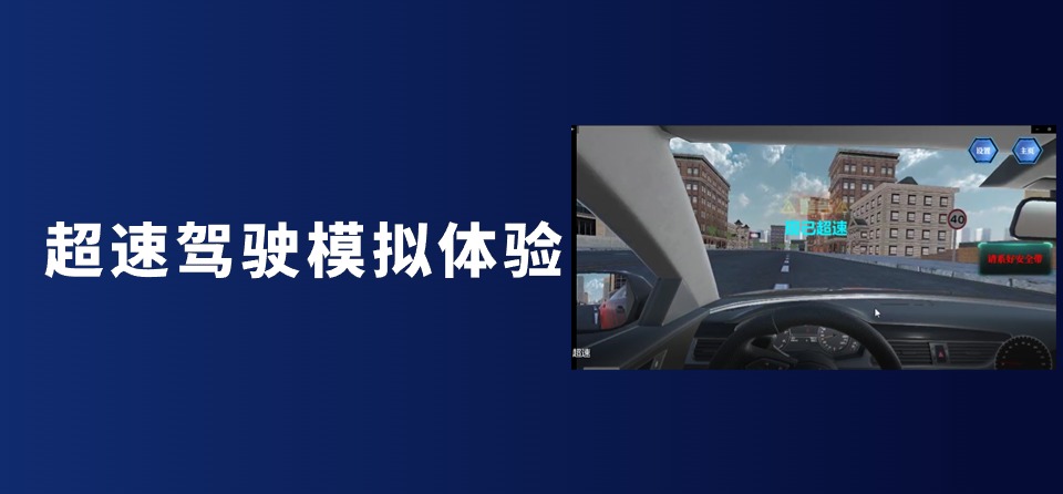 超速驾驶模拟体验,驾车前关于超速驾驶行为介绍,开始行驶,一段时间后提示超速、提示逆行、提示超速、发生车祸,事故发生后提示超速驾驶行为的交通危害,总结:车辆速度越快,对方向的操控性越差,遇到意外情况时来