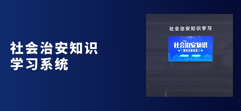 社会治安知识学习系统,社会治安知识问答系统中包含全面丰富的依法治安知识可通过后台管理程序进行实时更新,设备自主进行问答、评分通过人机交互自动问答模式,加强体验者的依法治安知识记忆。