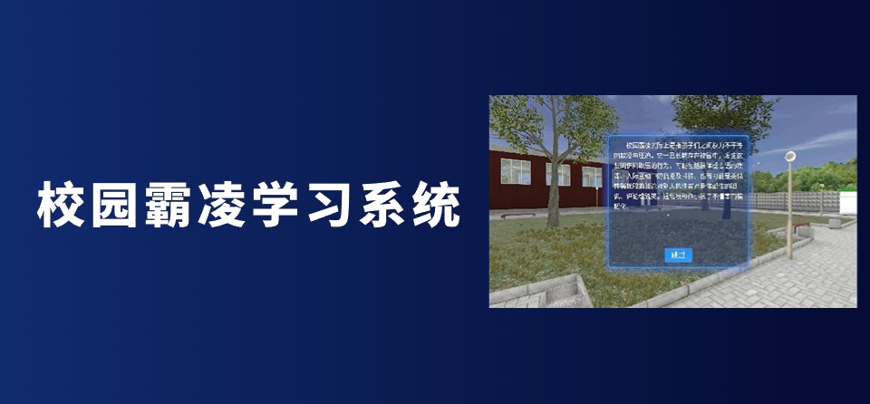 校园霸凌学习系统,通过前期的UI文字介绍,了解和学习有关于校园霸凌这一社会现象的种类和内容,并了解当霸凌事件发生时,当事人、监护人与学校之间如何正确的制止和处理此种事件。其中交互部分可通过手柄圆盘和扳机